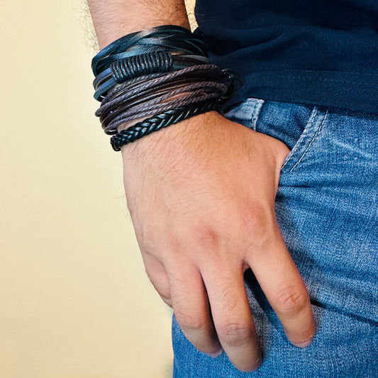Set 4 Pulseras Cuero sintetico Estilo Artesanal