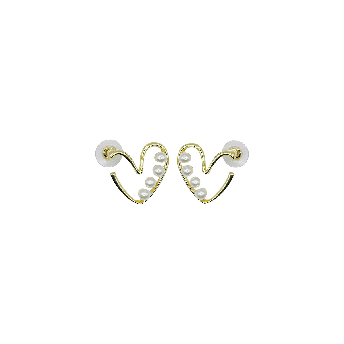 Par de Aretes para Mujer hechos de Aleación de Titanio en color Oro con figura de Corazón y Perlas alrededor.