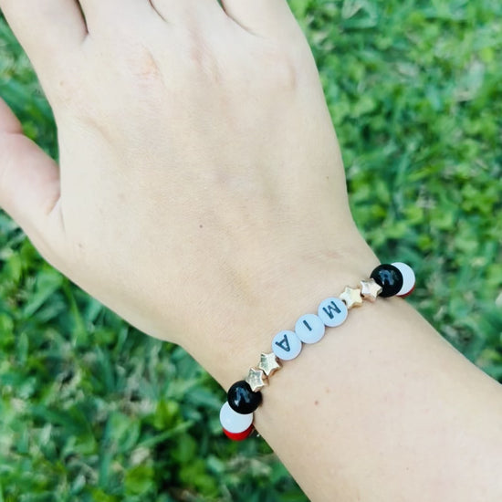 La Pulsera de Elástica en colores Rojo, Blanco y Negro con Cuentas Mía es una elección versátil. Ya sea que estés asistiendo al "Soy Rebelde Tour" o simplemente desees agregar un toque de rebeldía a tu atuendo diario, esta pulsera es tu compañera perfecta. Combínala con diferentes estilos, desde lo casual hasta lo elegante, y haz una declaración audaz sin importar a dónde te lleve tu rebeldía.